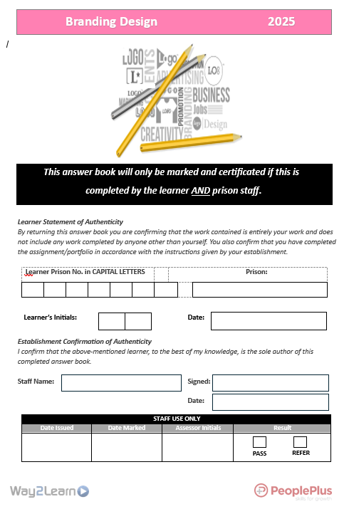 The Branding Design course introduces learners to the creative and strategic process of logo and brand identity design. Focusing on simplicity, versatility, memorability, and scalability, it combines theory with practical exercises in sketching, typography, and colour using only basic materials. Designed for independent in-cell study, the course promotes creativity, focus, and self-expression while developing transferable skills in problem-solving, communication, and design. Suitable for all levels, it provides a constructive and inspiring pathway into the creative industries and supports rehabilitation by building confidence and employability.